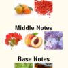 Tầng hương giữa mới thực sự là nét bùng nổ chính trong siêu phẩm nước hoa này. Tử đinh hương, hoa phong lữ và trái đào là ba hương thơm được các nhà pha chế sử dụng. Chút ngọt ngào của đào, chút thơm sắc, lả lướt của tử đinh hương mang lại nét nữ tính, quý phái cho người sử dụng. Tầng hương cuối khá đặc biệt khi hổ phách, hoắc hương là hai hương vị chính. Sự ấm áp, mạnh mẽ cá tính của các cô nàng được thể hiện rõ nét nhất ở tầng hương này.