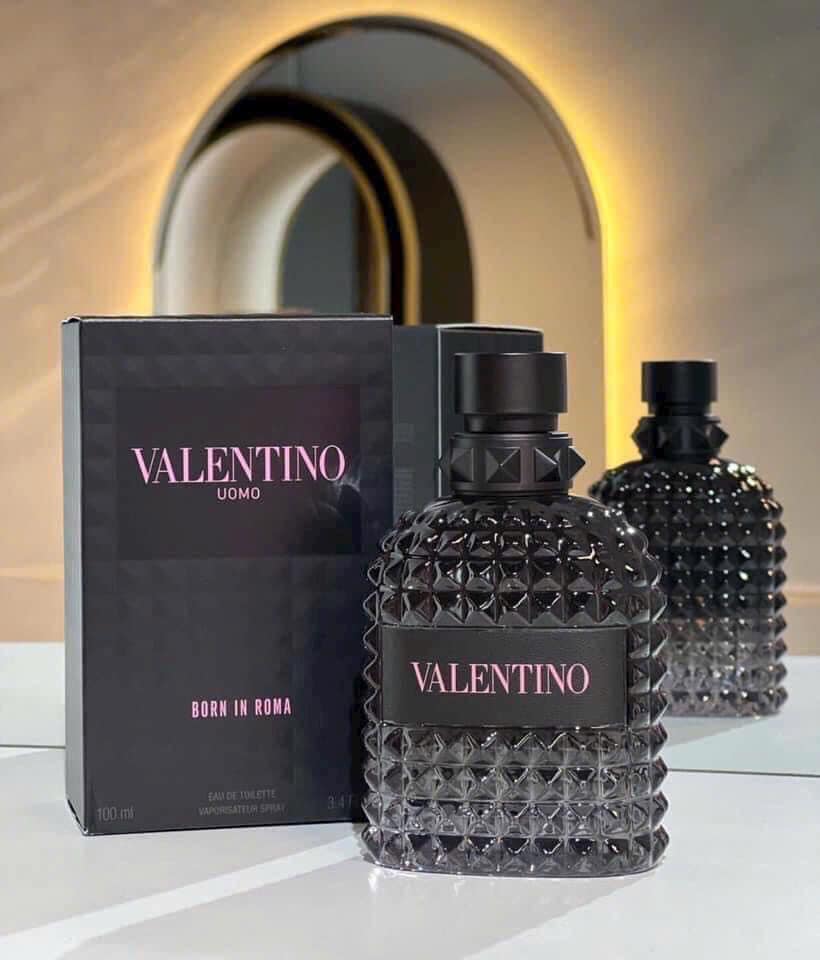 Được ra mắt vào năm 2019, Valentino Uomo Born in Roma Eau de Toilette là một biểu tượng nhằm tôn vinh Valentino Rockstud. Hình dáng chai được bao quanh bằng những kim tự tháp nhỏ lấy cảm hứng từ kiến trúc La Mã tráng lệ, là dấu ấn đặc trưng của thời trang Maison Valentino.