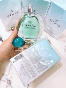 Air Di Gioia mang đến luồng không khí mát rượi, trước mặt là biển xanh trong vắt, xua đi những nóng bức của ngày dài. Air dành riêng cho người phụ nữ với tính cách yêu thích sự tự do, mạnh mẽ, muốn hòa mình về với thiên nhiên rộng lớn và thả hồn bay bổng tận hưởng cảm giác hạnh phúc khi làm chủ vạn vật xunh quanh. Nốt hương đầu mở ra là sự tươi mát từ hoa mẫu đơn, pha chút mùi hương hoang dã của gỗ và kết thúc là hương thơm nồng ấm của cây hoắc hương và cây bách.