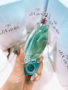 Vẫn thiết kế chai đơn giản nhưng tinh tế, cá tính của dòng Acqua di Gioia, Air mang màu sắc tươi tắn, năng động của biển xanh biếc dành cho những cô nàng thích dịch chuyển, mang năng lượng tích cực tiềm ẩn.