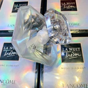 La Nuit Tresor Musc Diamant được hãng Lancome ra mắt vào năm 2019, và được thương hiệu nổi tiếng này ví như là một tác phẩm hoa mỹ chứa đựng sự gợi cảm, ngọt ngào, được bao bọc trong sự quyến rũ mê hoặc của xạ hương trắng. Thiết kế chai tựa như viên kim cương tỏa sáng, sang trọng và tinh khôi cùng thành phần note hương có cấu trúc đặc biệt, khi xạ hương trắng hiện diện ở khắp các tầng hương, phủ lên lớp kim cương bằng sắc hương mộng mị của hoa tím. La Nuit Tresor Musc Diamant là mùi hương ngọt ngào pha chút tươi mới, nhưng sạch sẽ và cuốn hút đầy bất ngờ