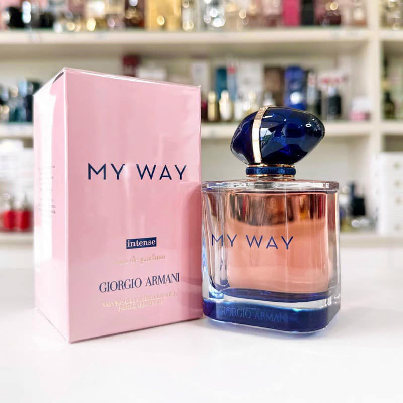 My Way Intense EDP đến từ Giorgio Armani được ví như mùi hương đánh bay mọi giới hạn để chinh phục các cô nàng khó tính nhất cả về khứu giác lẫn nhãn quang. Thiết kế độc đáo với chiếc nắp xanh mang biểu tượng của trái đất, nơi kết nối giữa thiên nhiên- con người. Chiếc nắp được đính thêm một vòng vàng, tượng trưng cho vầng dương chiếu sáng trên mọi cung đường mà ta gặp nhau.