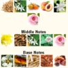 Hương giữa: Hoa trinh nữ, Hoa đinh hương, Hoa cam, Cỏ ba lá, Hoa hồngo