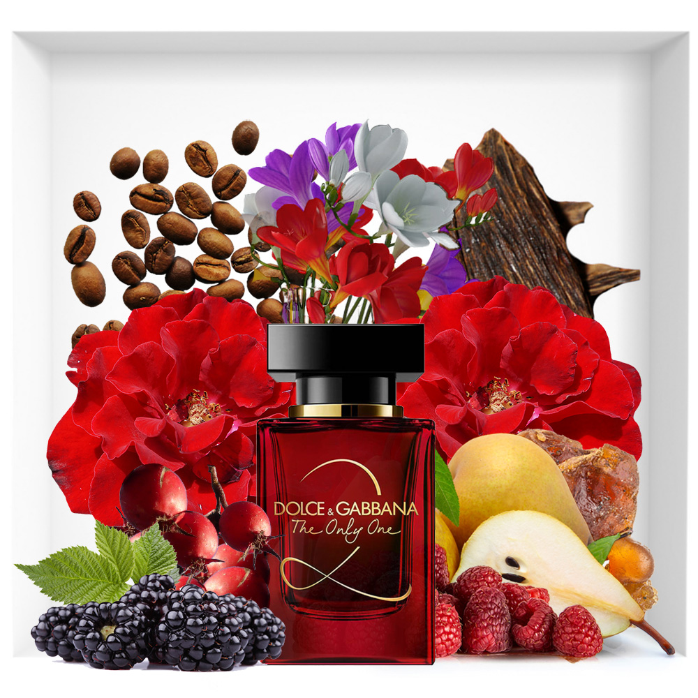 Nốt hương đầu của DOLCE & GABBANA THE ONLY ONE 2 mở ra với mùi hương bùng nổ từ các loại trái cây và hoa của mâm xôi đỏ, lê và lan Nam Phi. Sau đó, tầng giữa sẽ xuất hiện chút hương hoa violet gợi nhớ đến phiên bản The Only One. Tuy nhiên, sự có mặt của hoa hồng đỏ kết hợp với cà phê đã tạo nên một điểm nhấn vô cùng thú vị, giúp cho lớp hương ấm hơn, có chiều sâu và đậm đà hơn. Lớp hương cuối có đậu tonka, kết hợp với những thành phần nồng nàn như gỗ hổ phách, hoắc hương mang đến lớp nền ngọt ngào, ấm áp dai dẳng, nhưng không quá lấn ớt hương hoa hồng tinh tế ở trên.
